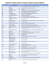 Alpha Strike Special Abilities List